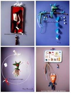 Récolter des petits riens qui trainent ici et là, au fond d'un tiroir, entre les pages d'un livre corné, nouer un fragile fil d'argent entre eux pour raconter une histoire, un conte un peu désuet composé de minuscules trésors, de petites choses légères et précieuses qui virevoltent et se frôlent... Moment poétique suspendu, petite lucarne ouverte sur l'imaginaire...